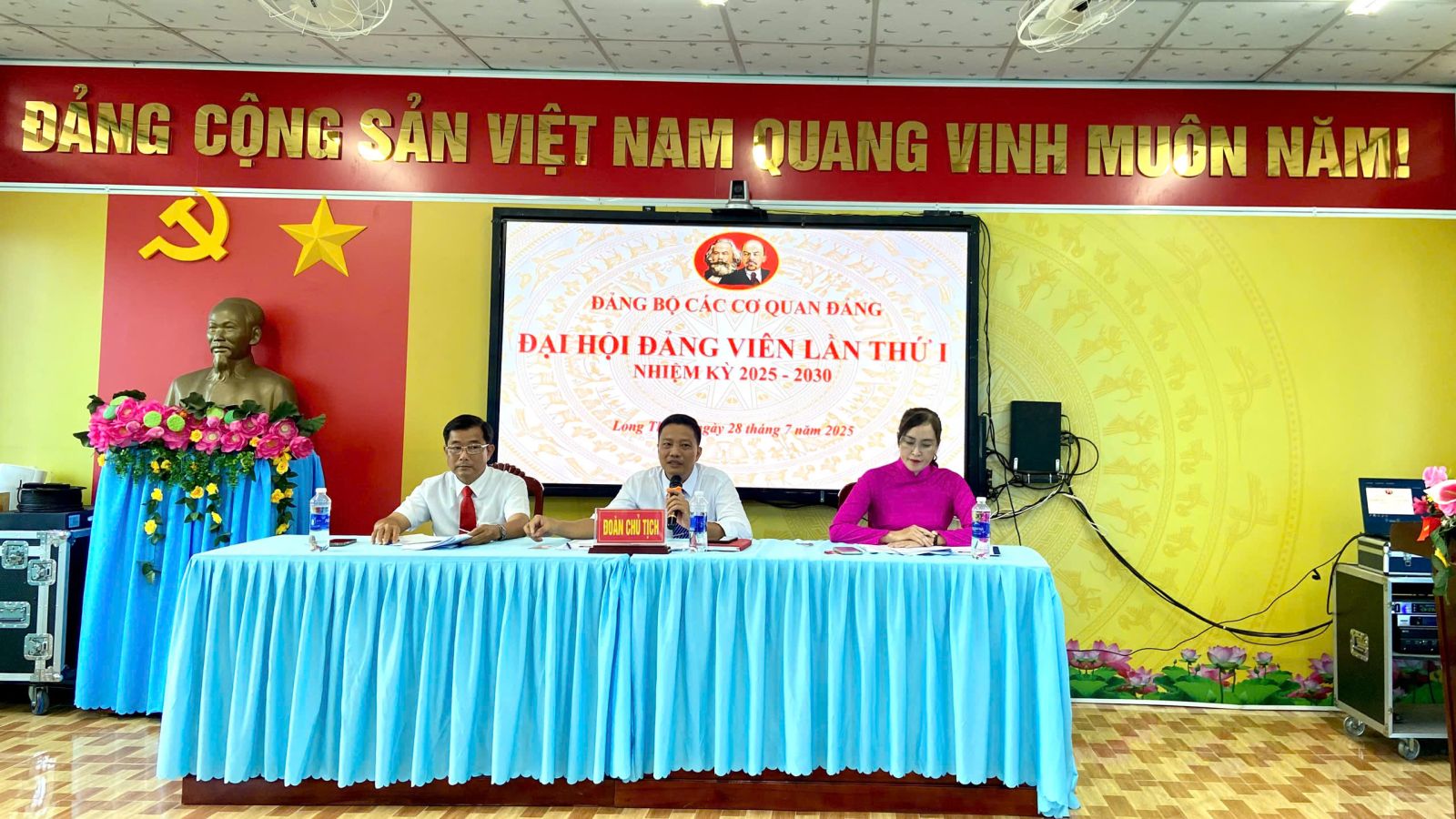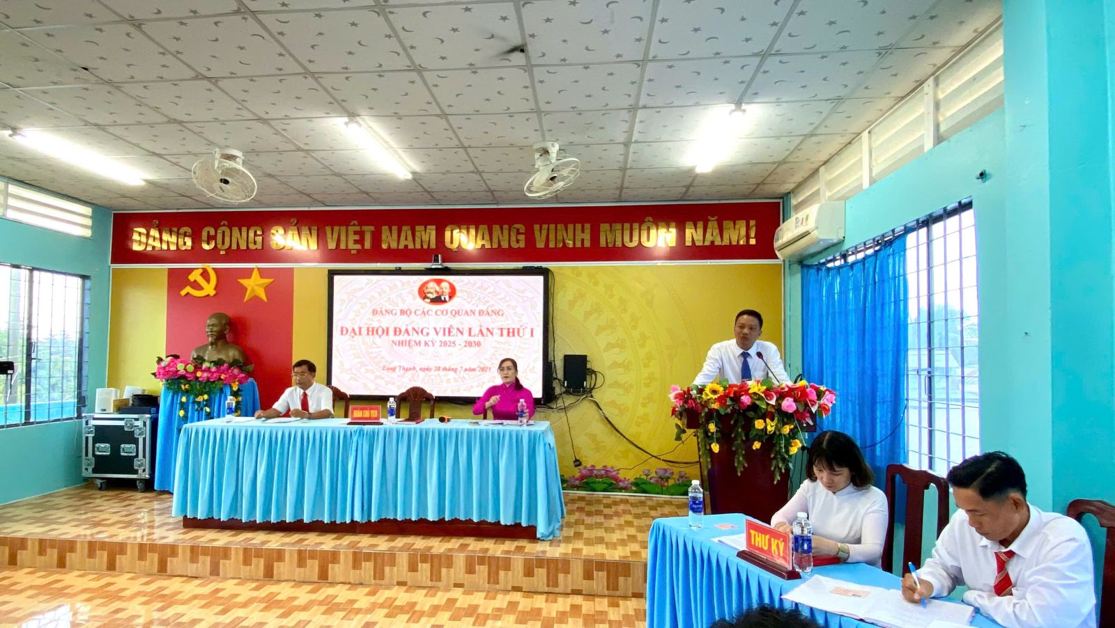 Hôm nay, Đảng bộ các Cơ quan Đảng xã Long Thạnh long trọng tổ chức Đại hội lần thứ I, nhiệm kỳ 2025-2030, nhằm đề ra phương hướng, mục tiêu, nhiệm vụ và giải pháp, nhiệm kỳ 2025-2030; Công bố Quyết định chỉ định Ban Chấp hành Đảng bộ, Ban Thường vụ Đảng ủy, Bí thư, Phó bí thư Đảng ủy, nhiệm kỳ 2025-2030; Quyết định chỉ định Đoàn Đại biểu đi dự Đại hội Đảng bộ xã Long Thạnh lần thứ I, nhiệm kỳ 2025-2030. Đồng thời, cho ý kiến đóng góp vào dự thảo các Văn kiện Đại hội cấp trên.