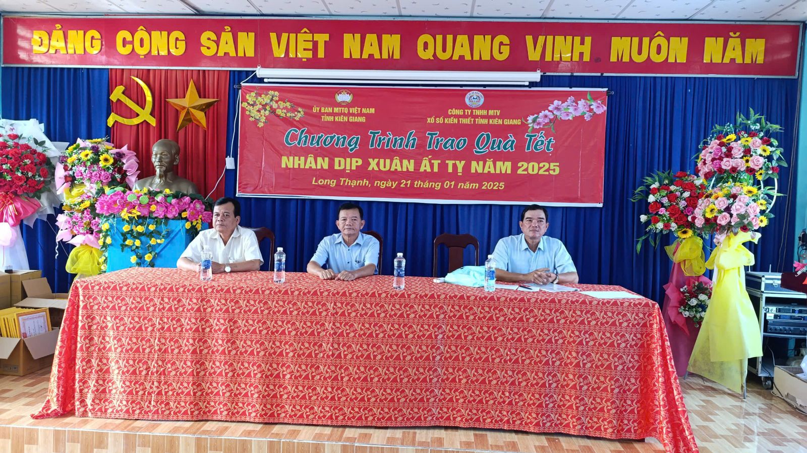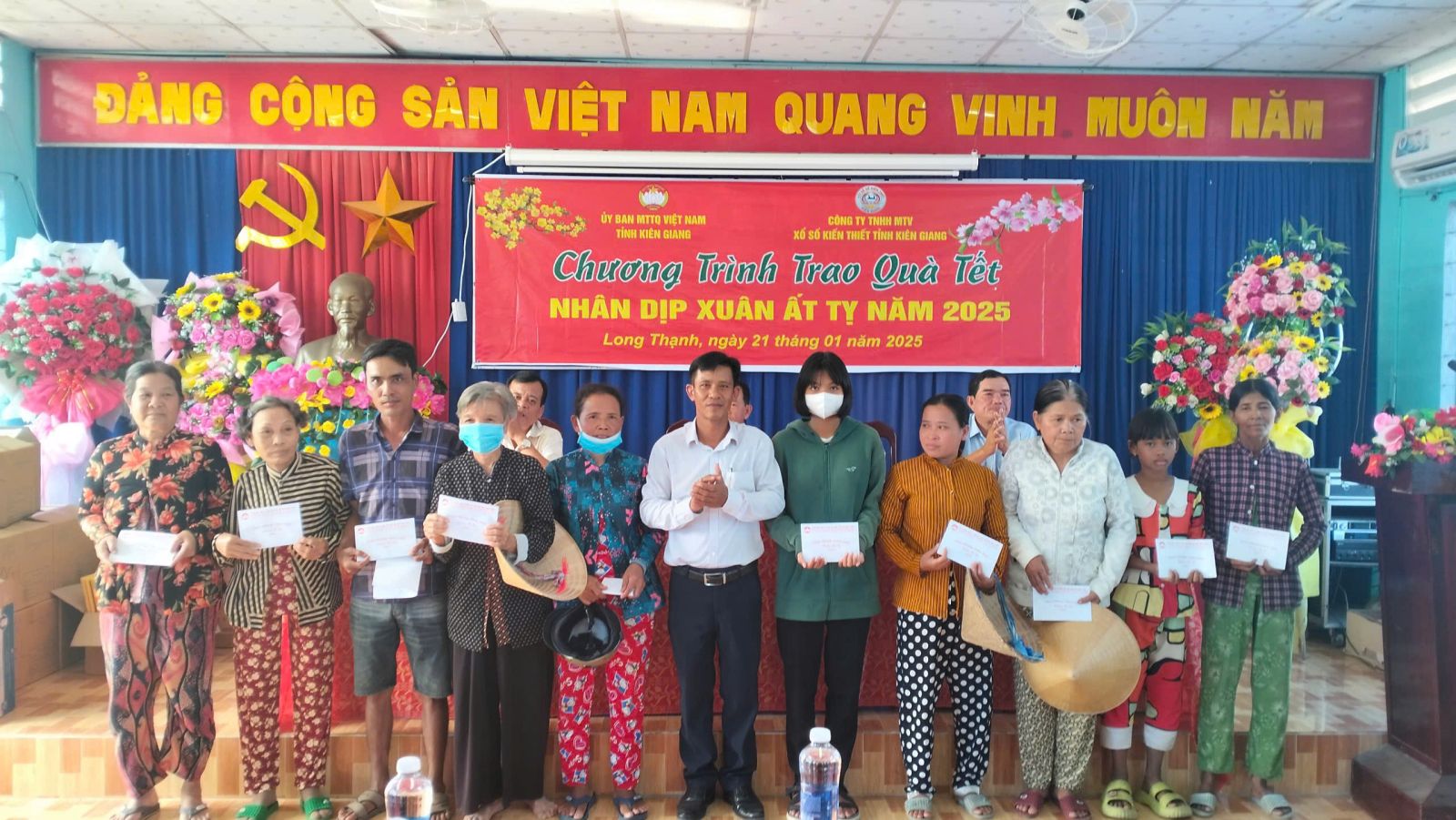 Chiều ngày 21/01/2025, Ủy ban MTTQ Việt Nam huyện Giồng Riềng phối hợp với Ủy ban nhân dân và Ủy ban MTTQ Việt Nam xã Long Thạnh, huyện Giồng Riềng, tỉnh Kiên Giang tổ chức chương trình trao quà tết cho hộ Cận nghèo nhân dịp tết Nguyên Đáng Ất Tỵ năm 2025 từ nguồn quà của Ủy ban MTTQ Việt Nam tỉnh Kiên Giang vận động Công ty trách nhiệm hữu hạn Một thành viên Xổ số Kiến thiết tỉnh Kiên Giang hỗ trợ 110 phần quà trị giá 55.000.000 đồng (mỗi phần quà trị giá 500.000 đồng)