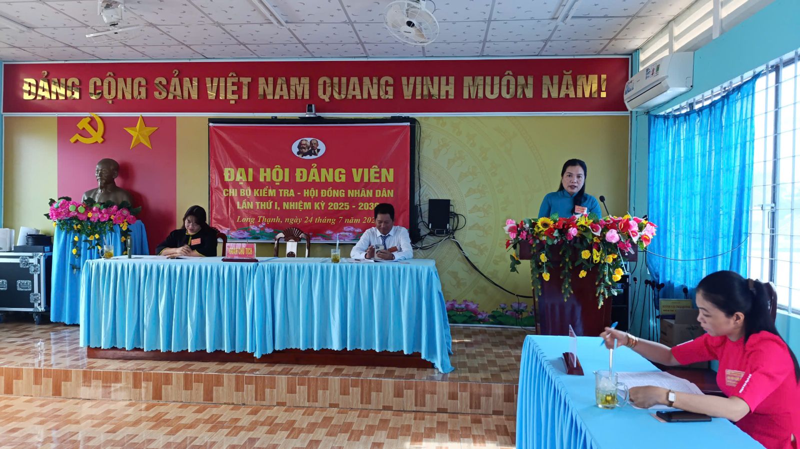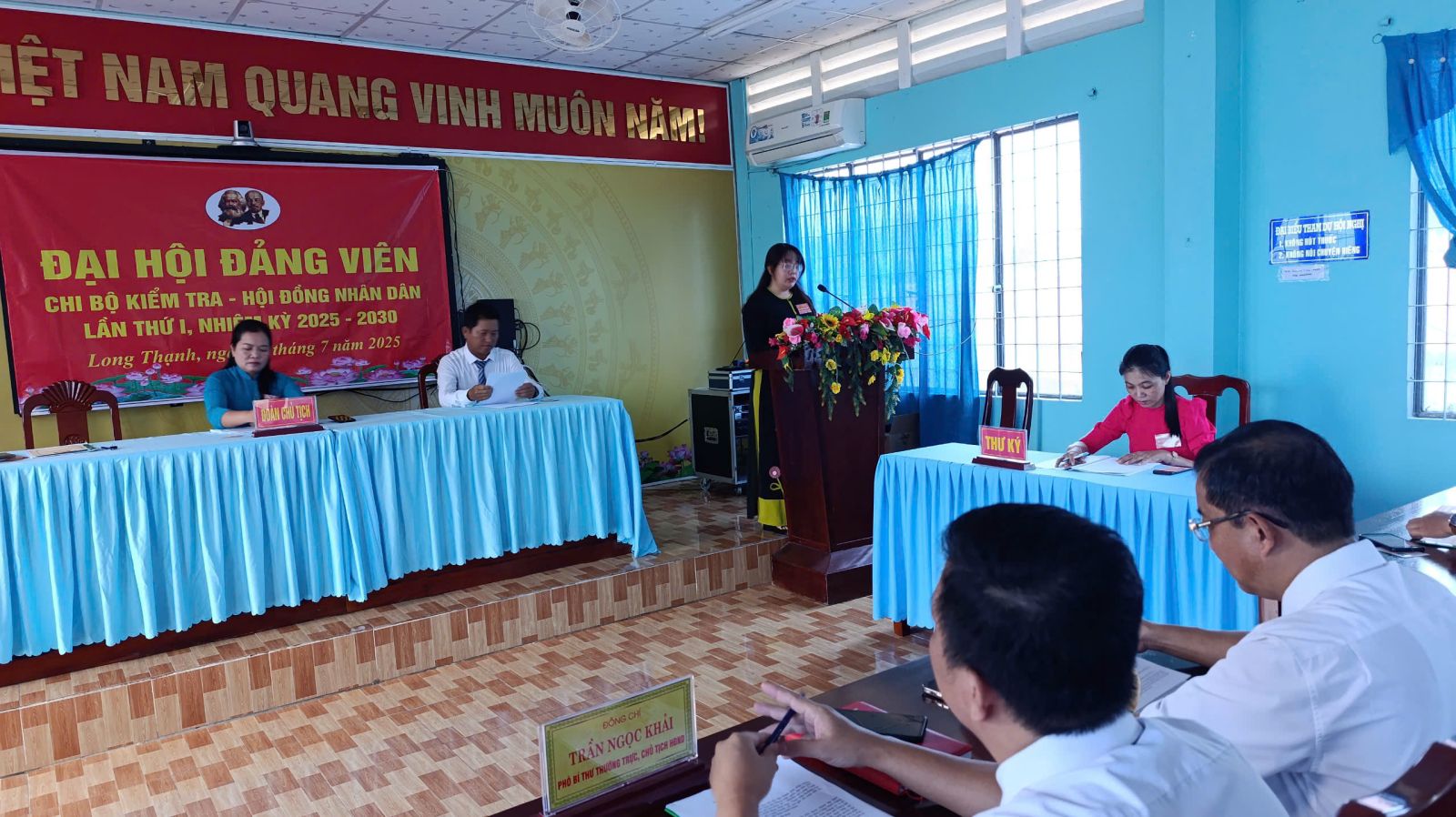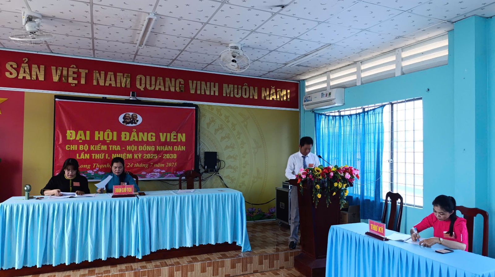Đại hội đã Công bố quyết định của Đảng ủy xã Long Thạnh về việc thành lập Chi bộ Kiểm tra-Hội đồng nhân dân có 10 đảng viên, Quyết định chỉ định Ban Chấp hành, Bí thư, Phó bí thư chi bộ Kiểm tra-Hội đồng nhân dân, nhiệm kỳ 2025 – 2030 gồm các đồng chí: Thị Mỹ Duyên Hải, Ủy viên Ban Thường vụ Đảng ủy-phó Chủ tịch HĐND xã giữ chức vụ Bí thư Chi bộ, đồng chí Nguyễn Thanh Quốc, Ủy viên Ban Chấp hành Đảng ủy-Phó Chủ nhiệm Ủy ban Kiểm tra Đảng ủy giữ chức vụ phó Bí thư Chi bộ, đồng chí Lê Thị Mỹ Dung, giữ chức vụ Chi ủy viên chi bộ; Quyết định chỉ định danh sách Đoàn đại biểu đi dự Đại hội đảng viên Đảng bộ Cơ quan Đảng xã Long Thạnh lần thứ I, nhiệm kỳ 2025-2030 có 10 đồng chí.