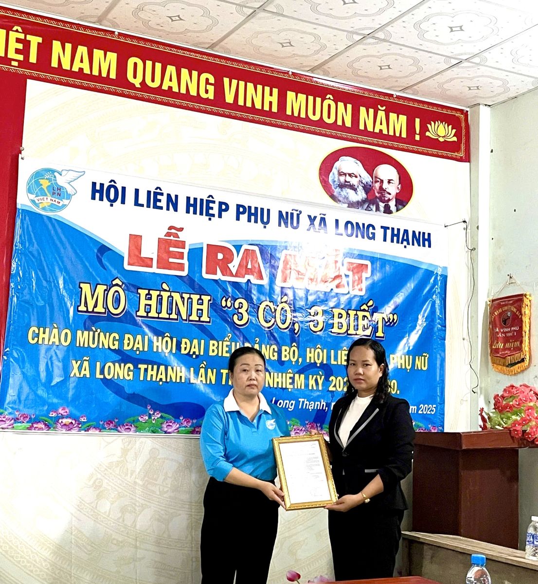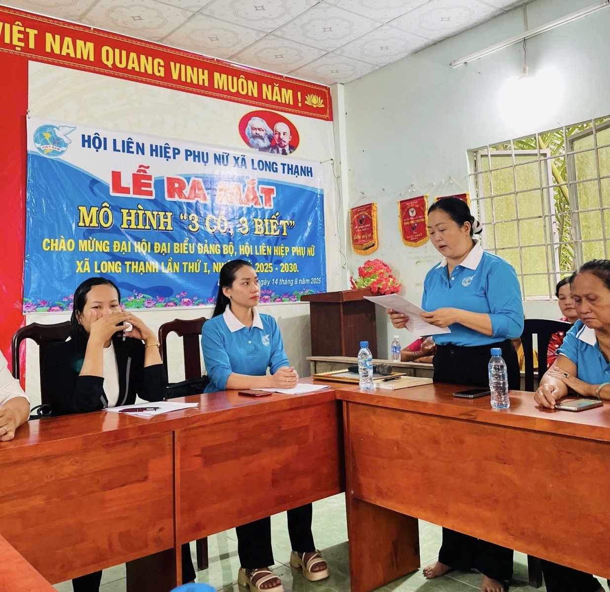Ngày 14/8/2025, Hội LHPN xã Long Thạnh tổ chức Lễ Ra mắt mô hình “3 có, 3 biết” tại ấp Danh Thợi (sau đây gọi tắt là mô hình).