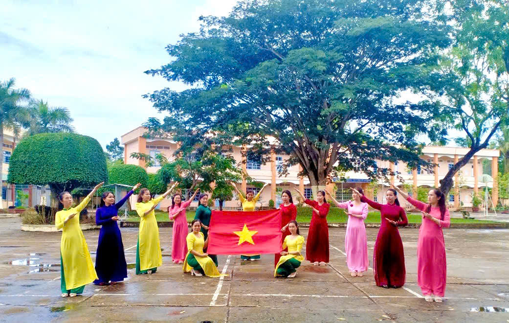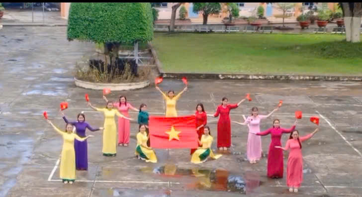 Cuối buổi Lễ, Hội LHPN xã cùng các giáo viên trường và các em học sinh thực hiện xếp hình 2-9 chào mừng 80 năm Quốc khánh nước Cộng hoà xã hội chủ nghĩa Việt Nam (2/9/1945-2/9/2025).