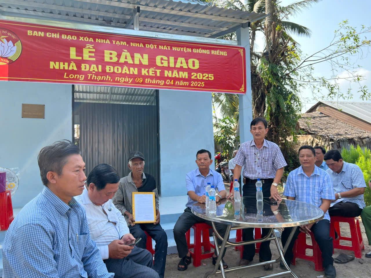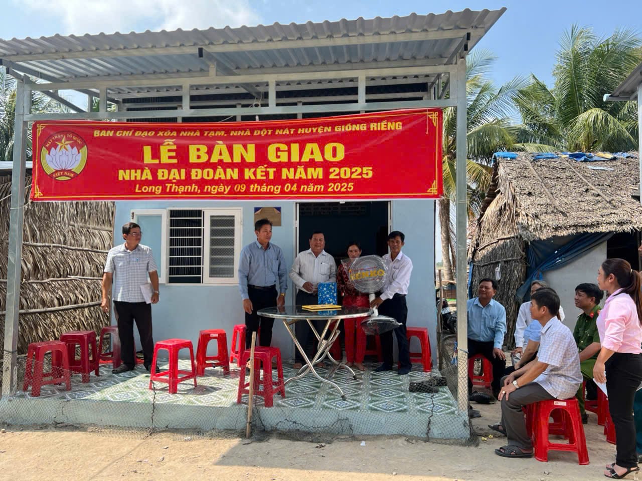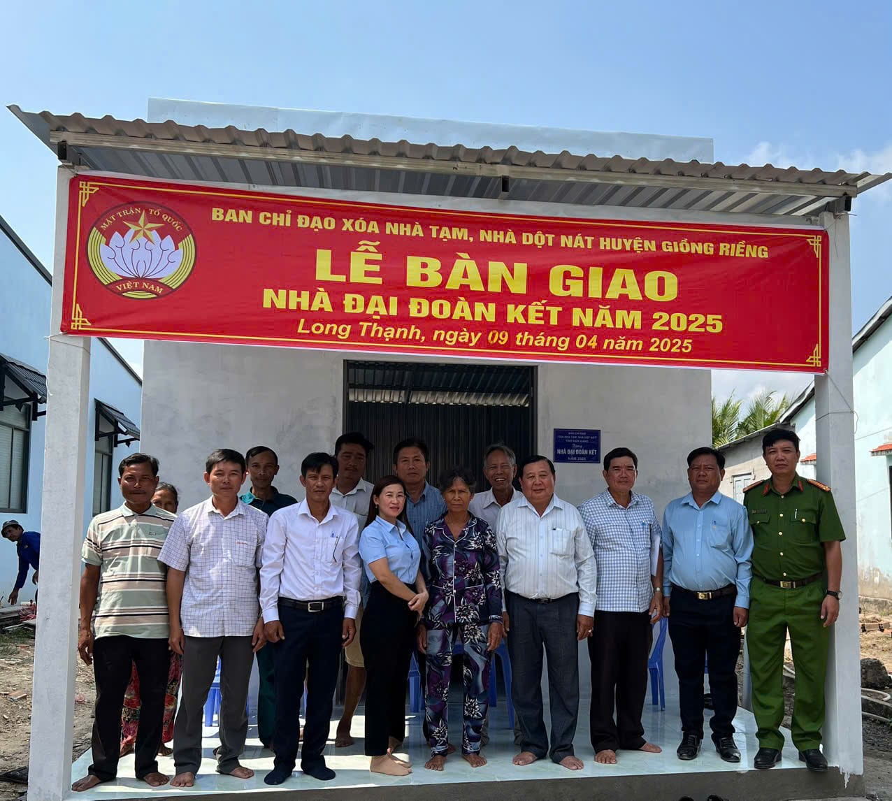 Ngày 09/4/2025 Ban Chỉ đạo “Xóa nhà tạm, nhà dột nát” huyện Giồng Riềng cùng Ban Chỉ đạo “Xóa nhà tạm, nhà dột nát” xã Long Thạnh tổ chức lễ bàn giao 08 căn nhà Đại đoàn kết cho hộ nghèo, hộ cận nghèo là người dân tộc Khmer trong thực hiện chương trình “Xóa nhà tạm, nhà dột nát” năm 2025. Mỗi căn nhà trị giá thấp nhất là 64.000.000 đồng, cao nhất là 90.000.000 đồng. Tổng giá trị 08 căn nhà với số tiền là 582.000.000 đồng (trong đó nguồn kinh phí do Ban chỉ đạo “Xóa nhà tạm, nhà dột nát tỉnh hỗ trợ 60.000.000 đồng/căn là 480.000.000 đồng; phần còn lại vận động Mạnh thường quân, gia đình, người thân được hỗ trợ nhà đóng góp thêm 102. 000.000 đồng).