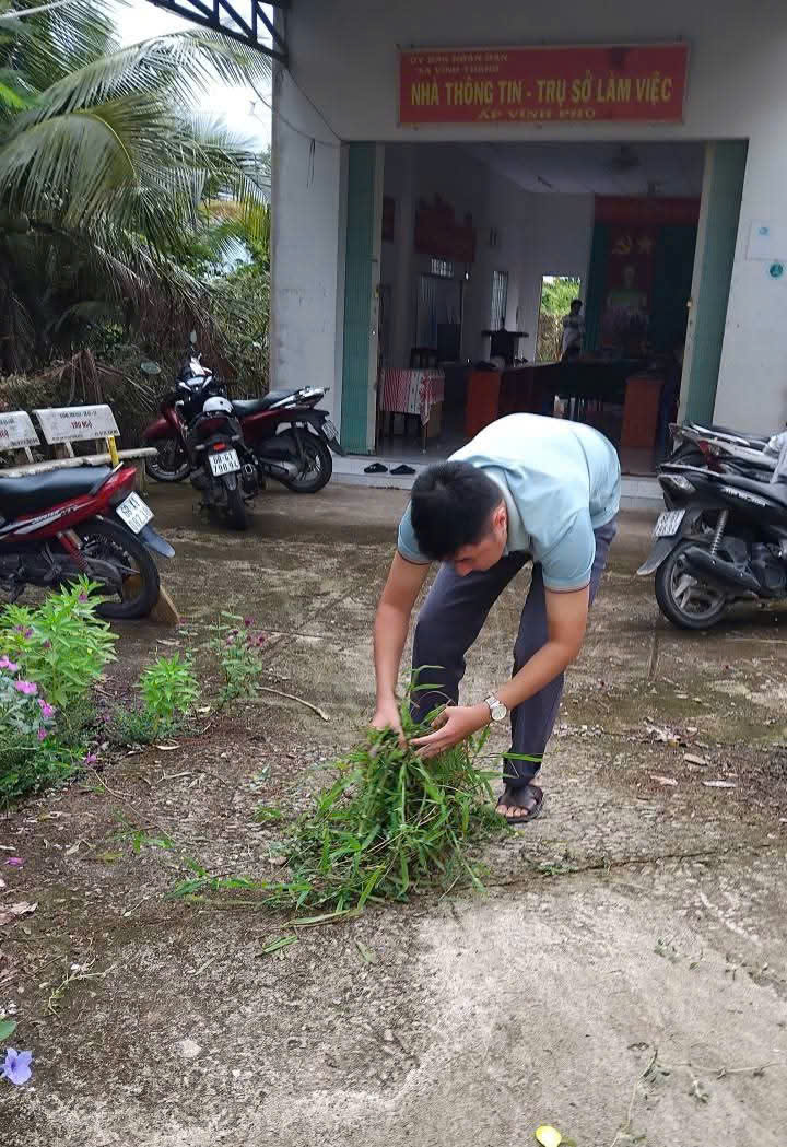 Sáng thứ Bảy, ngày 19/7, tại khuôn viên trụ sở ấp Vĩnh Phú, xã Long Thạnh, các chức danh ấp đã tích cực ra quân tổng vệ sinh môi trường, phát quang cây cỏ, chăm sóc tuyến đường hoa nhằm tạo cảnh quan xanh – sạch – đẹp sau khi đơn vị hành chính mới được sáp nhập