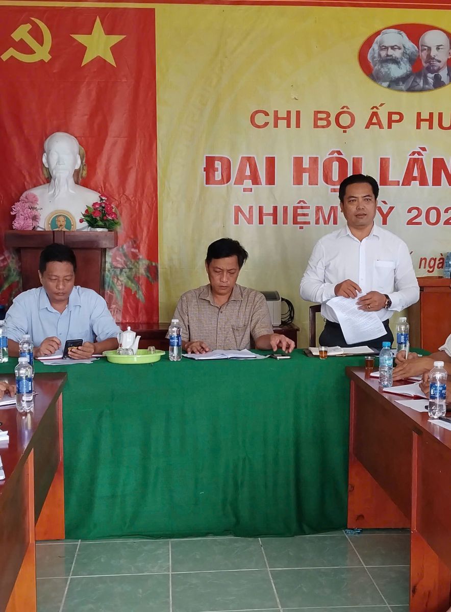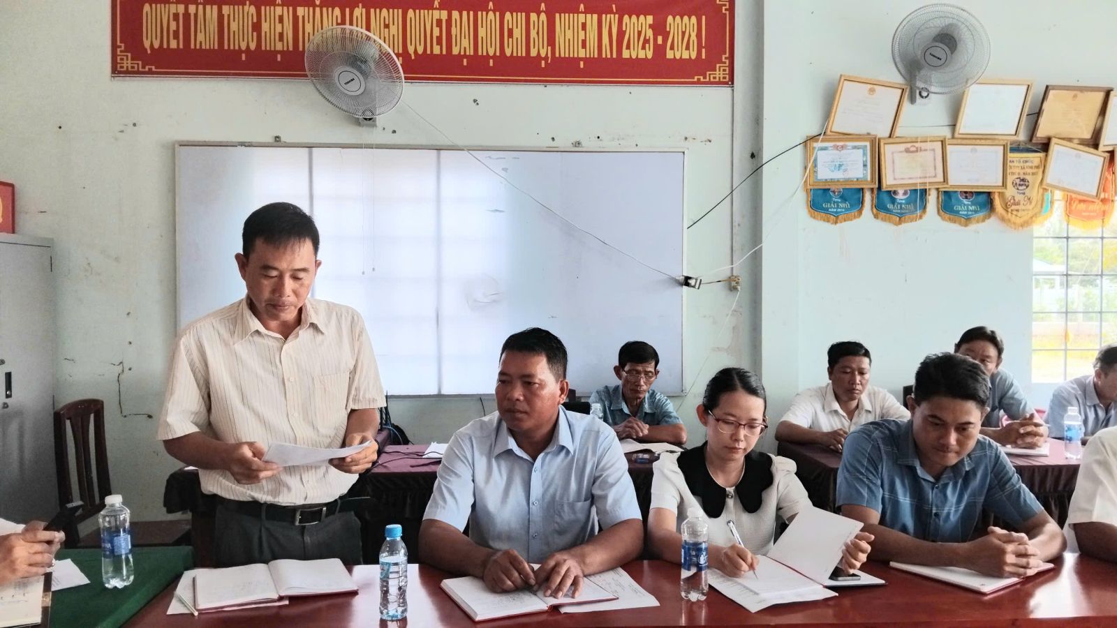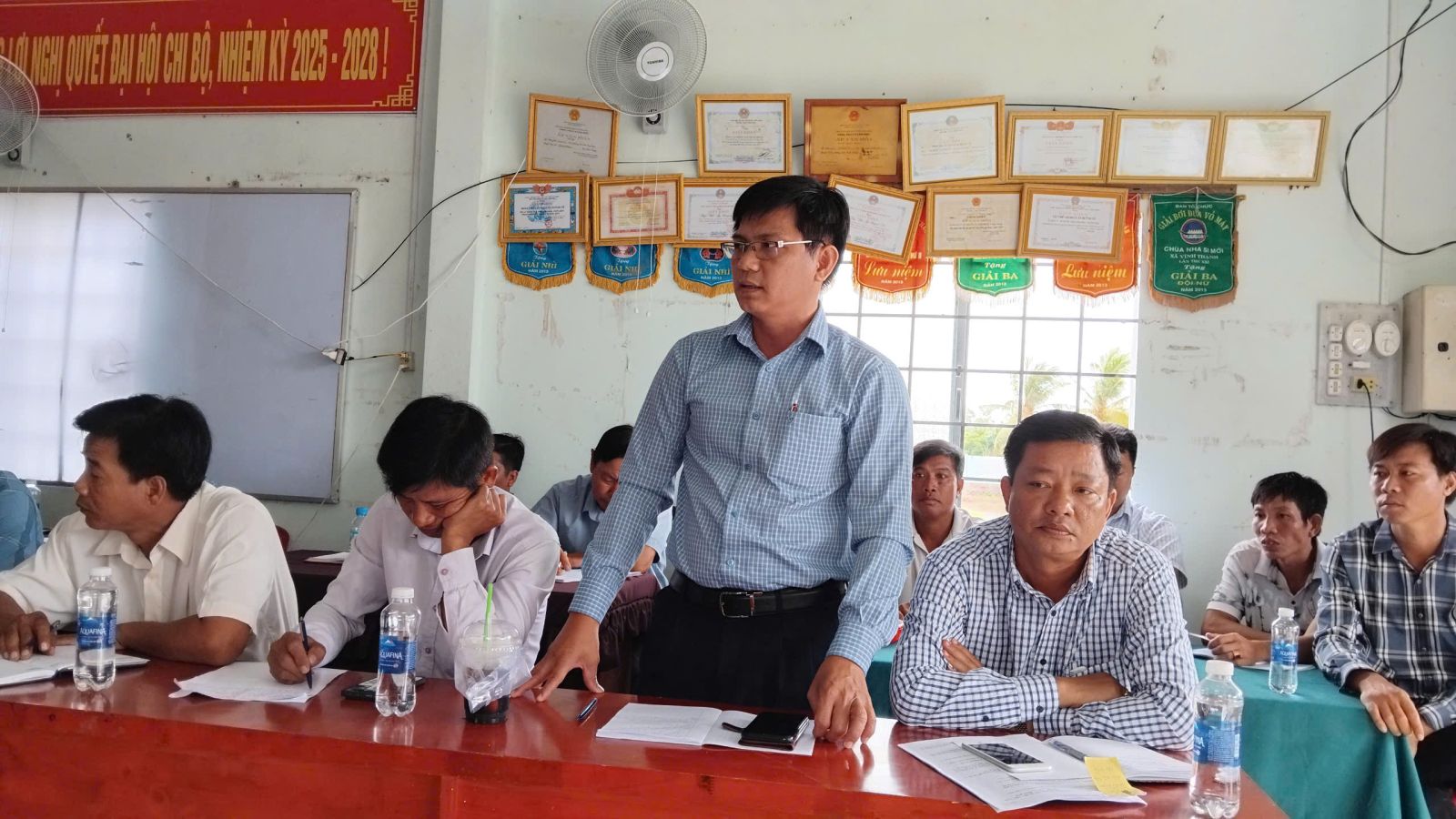 Tham dự với đoàn có đồng chí Trần Ngọc Khải, phó bí thư thường trực - Chủ tịch HĐND; Đồng chí Huỳnh Văn Thái Quỳnh, Phó Bí thư đảng ủy - Chủ tịch UBND xã; đại diện lãnh đạo UB. MTTQVN xã, cùng các đồng chí trưởng, phó các Ban ngành, đoàn thể xã. Nhằm nắm bắt tình hình thực hiện nhiệm vụ 6 tháng đầu năm 2025 tại địa phương. Đoàn công tác đã nghe đại diện 2 chi bộ báo cáo kết quả công tác từ đầu năm đến nay, phân tích thuận lợi, khó khăn và các kiến nghị nhằm thúc đẩy phát triển kinh tế - xã hội.