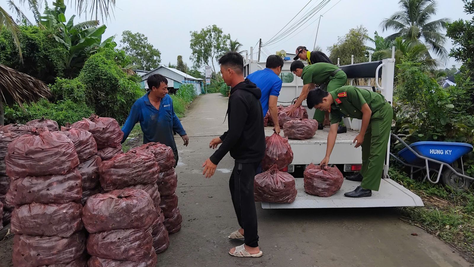 Việc giá khoai xuống thấp khiến nhiều hộ dân không đủ chi trả chi phí đầu tư, thu hoạch. Trước thực trạng đó, lực lượng đoàn viên thanh niên và cán bộ chiến sĩ công an xã đã chung tay thu gom, vận chuyển và kết nối đầu ra nhằm góp phần giảm bớt gánh nặng cho nông dân.