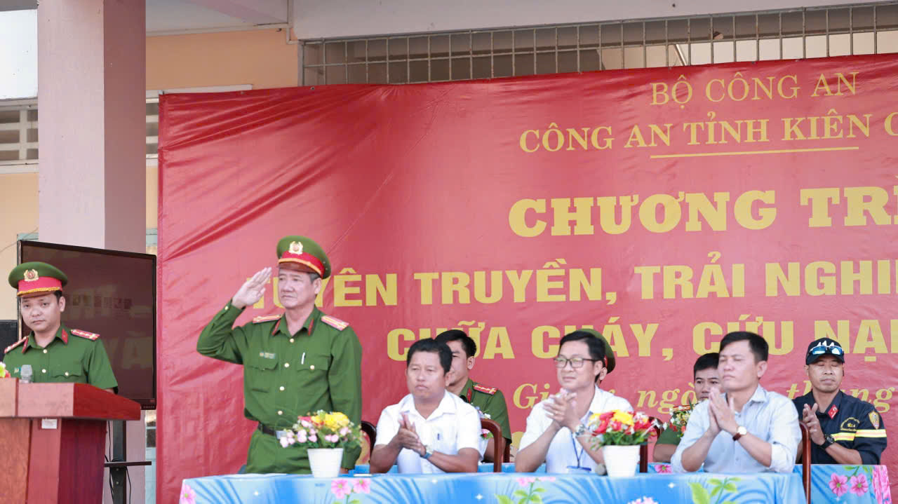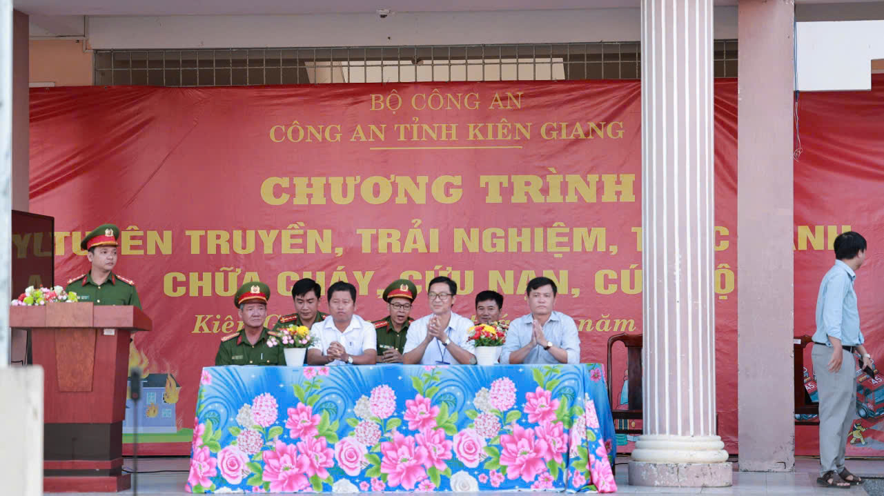 đến dự có đồng chí Thiếu tá Nguyễn Văn Kha, đại diện phòng Cảnh sát PCCC&CNCH tỉnh Kiên Giang; đồng chí Thượng tá Trương Văn Khê, phó Trưởng Công an huyện Giồng Riềng; đồng chí Đại úy Võ Văn Hết, phó đội trưởng đội cảnh sát QLHC về TTXH Công an huyện Giồng Riềng; đồng chí Nguyễn Thanh Quốc phó Chủ tịch UBND xã Long Thạnh; đồng chí Trần Đức Toàn, hiệu trưởng Trường THCS-THPT Long Thạnh và cán bộ, chiến sỉ phòng cảnh sát PCCC&CNCH cùng Ban giám hiệu, giáo viên và toàn thể học sinh Trường THCS-THPT Long Thạnh tham dự.
