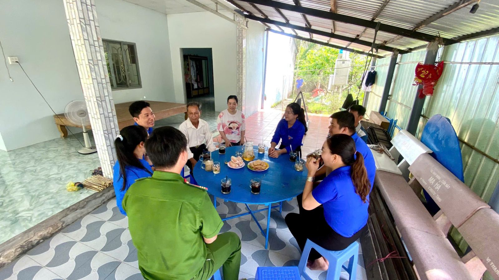 Đại diện Thường trực Xã đoàn, đồng chí Võ Thị Mỹ Nhân – Bí thư Xã đoàn – đã trực tiếp đến thăm hỏi, động viên tinh thần và gửi lời tri ân sâu sắc đến những đóng góp của ông Hiểu trong thời kỳ kháng chiến. Cùng tham gia đoàn còn có các đồng chí BCH xã Đoàn, Bí thư Chi đoàn trực thuộc ấp, trường học và lực lượng Công an xã. Nhân dịp này, đoàn đã trao tặng tiền mặt trị giá 500.000 đồng nhằm thể hiện tấm lòng tri ân của tuổi trẻ địa phương đối với thế hệ cha anh đi trước, góp phần lan tỏa truyền thống “Uống nước nhớ nguồn” trong đoàn viên, thanh thiếu nhi trên địa bàn xã.