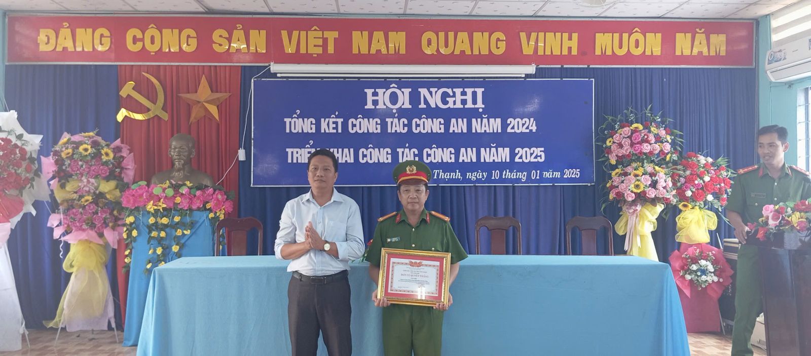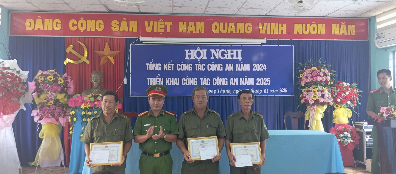 Tại hội nghị đã tổ chức công bố Quyết định của UBND tỉnh Kiên Giang và trao tặng Bằng khen của UBND tỉnh cho 01 tập thể cán bộ và nhân dân xã Long Thạnh đã có thành tích xuất sắc trong phong trào thi đua “Vì an ninh Tổ quốc” và 01 cá nhân đạt thành tích xuất sắc trong phong trào toàn dân bảo vệ an ninh Tổ quốc năm 2024; Công bố Quyết định của Giám đốc Công an tỉnh Kiên Giang tặng danh hiệu “Đơn vị Quyết thắng” đối với Công an xã Long Thạnh đã có thành tích xuất sắc trong phong trào thi đua “Vì an ninh Tổ quốc”, Danh hiệu “Chiến sĩ thi đua cơ sở” cho 01 đồng chí Trưởng Công an xã và danh hiệu “Chiến sĩ tiên tiến” cho 04 đồng chí trong lực lượng công an xã đã có thành tích xuất sắc trong phong trào thi đua “Vì an ninh Tổ quốc; Công bố Quyết định của UBND huyện Giồng Riềng trao tặng giấy khen cho 04 tập thể và 08 cá nhân có thành tích xuất sắc trong phong trào toàn dân bảo vệ an ninh Tổ quốc năm 2024; và Quyết định của UBND xã Long Thạnh tặng giấy khen cho 02 thập thể và 09 cá nhân đạt thành tích xuất sắc trong phong trào toàn dân bảo vệ an ninh Tổ quốc năm 2024.