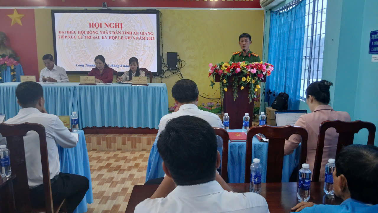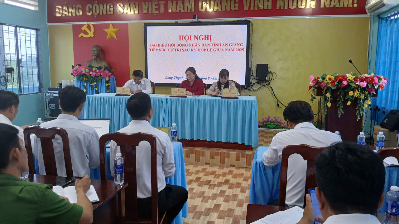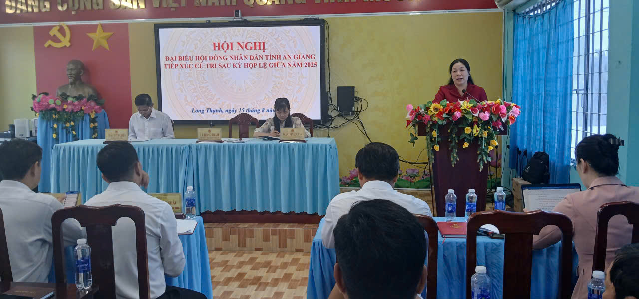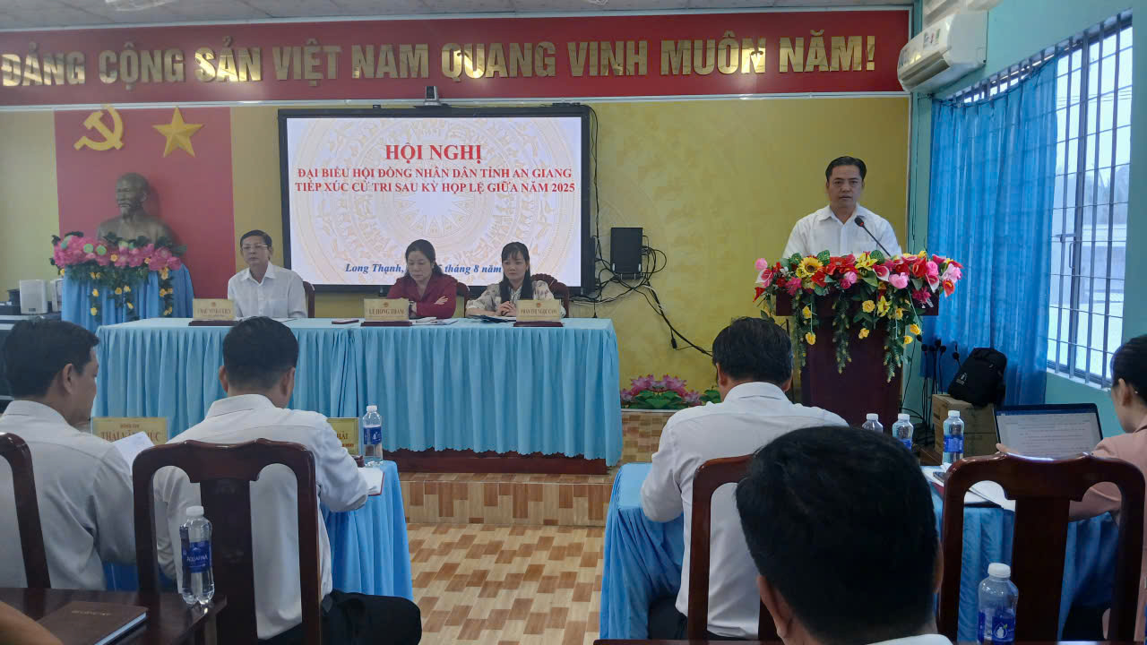 Tổ đại biểu HĐND tỉnh An Giang đơn vị số 14 gồm bà Lê Hồng Thắm – Ủy viên Ban Thường vụ Tỉnh ủy, Phó Chủ tịch HĐND tỉnh; bà Phan Thị Ngọc Cẩm – Phó Chủ tịch HĐND huyện Giồng Riềng; ông Châu Minh Chiến – Đại biểu HĐND tỉnh đã có buổi tiếp xúc cử tri xã Long Thạnh sau kỳ họp giữa năm HĐND tỉnh khóa X, nhiệm kỳ 2021-2026.